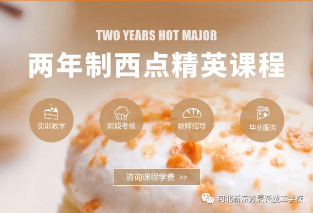 河北新東方開設(shè)有長期西點和短期西點,滿足不同人群的需求,系統(tǒng)地教授各種西點制品的制作技術(shù)與知識,以及西點創(chuàng)業(yè)、經(jīng)營管理方面的知識。歡迎所有熱愛西點的同學(xué)報名學(xué)習(xí)。