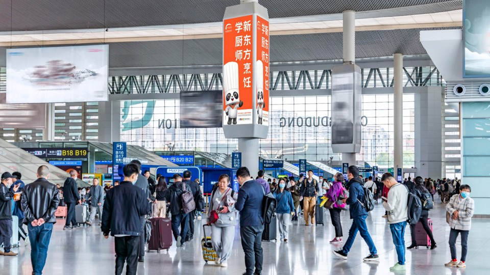 經(jīng)文化和旅游部數(shù)據(jù)中心測算,2023年國內(nèi)出行旅游人次約為45.5億,同比增長80。作為國內(nèi)旅游出行的選,各大高鐵站內(nèi)匯集的旅客流量以及龐大的潛在消費群體,將會進一步促進新東方烹飪教育傳播,此次高鐵廣告的布局將新東方烹飪觸角延伸到各個角落。
